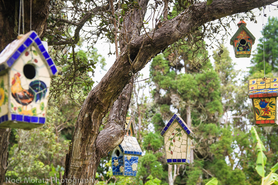Another whimsical detail with these little mosaic birdhouses, who wants to take one home with them?