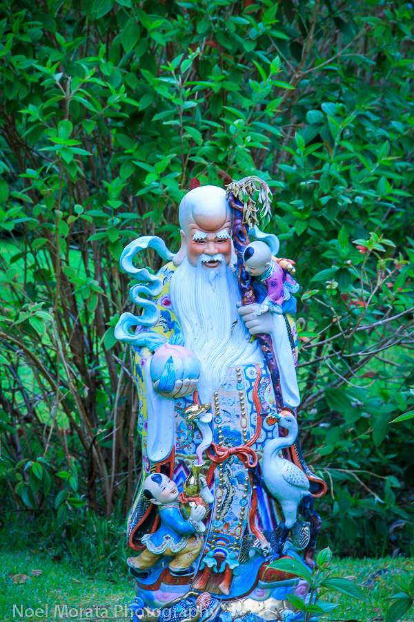 One last Buddha, greets us on the way back to the parking lot with another flower offering on his folded hands.