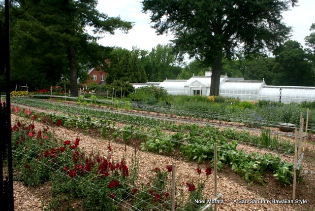 As we walk through the cutting beds, you notice how well cared the beds are by dozens of volunteers that meticulously care for the gardens and the flowers that grace the interiors of the home. You can see the large conservatory in the background which I made an earlier post on the exotics that were grown inside.