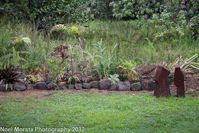 The grass area is large and divided into an upper and lower section. I’m planning an elevated center bed with a combination of aged statuary mixed in with colorful bromeliads, succulents and other tropical adornments.