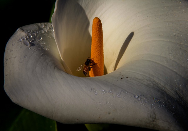 A busy bee inside the calla working its magic.