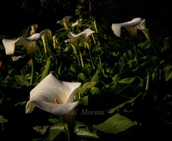 Close-by to the dell is a shady area filled with these beautiful calla lillies, so perfect and with huge white blooms. Their bright yellow spadix attracting a slew of hungry bees flying everywhere – it was so nice to see them here, active and plentiful.